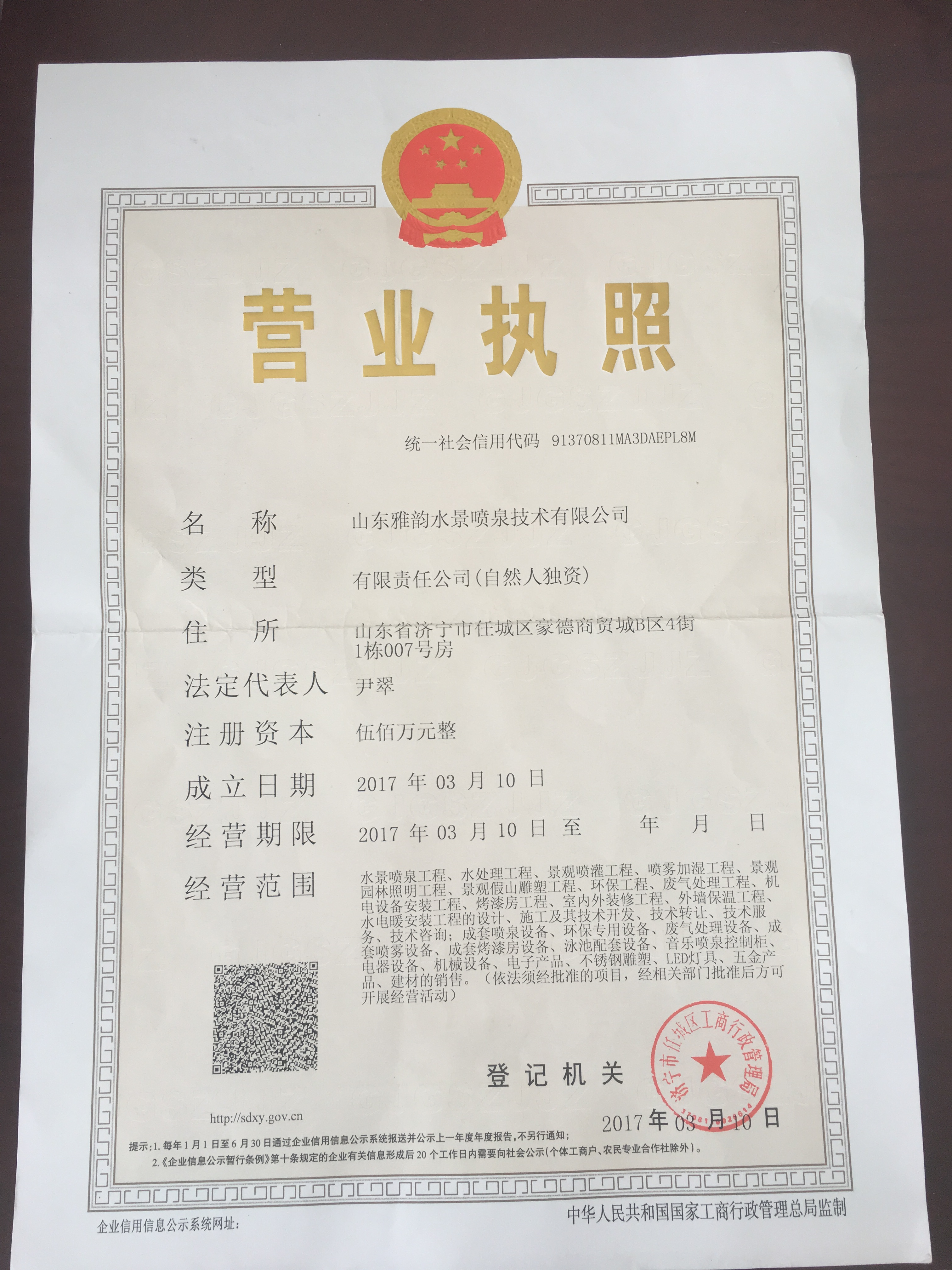 山東雅韻水景噴泉技術有限公司座落于古老而文明的孔孟之鄉、禮儀之邦的歷史文化名城——山東濟寧;主要經營噴泉設備生產制造,承接大型音樂噴泉、程控噴泉、雕塑噴泉、水幕電影等各類噴泉的研制設計以及各類噴頭機的加工制造銷售。公司產品以品質優異、外觀新穎、品種繁多、性能穩定及良好的售后服務贏得了廣大客戶的一致贊譽,產品暢銷全國各大城市。公司擁有一批專業的技術人才和員工,引進國內外優良的技術和噴泉產品等加工檢測設備,在制作過程中選用優異的產品質量、在生產過程中嚴格按照標準精度加工,施工過程中都是按照規范標準來執行。公司秉承“ 誠信為本,服務至上,建立了“立品、樹人、發展”的企業文化和價值觀,堅持以客戶為核心,以奮斗者為本的理念,持續加大資金投入,注重培養和引進品牌、管理、研發、組織等多方面人才,努力將資源優勢、人才優勢轉化為技術優勢、市場優勢,具有長遠戰略發展眼光。