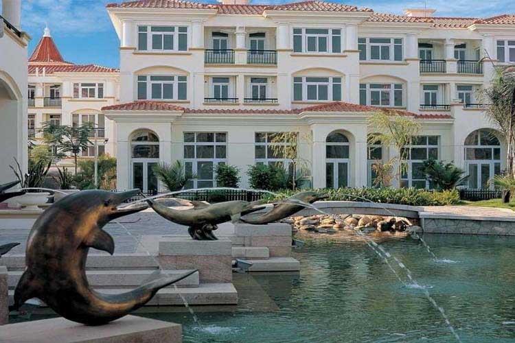 首先,旱地噴泉建設雜而亂缺乏與整體建筑的協調性。在很多的主題公園、園林景觀中都可以看到大大小小的噴泉,但是有些噴泉的設計實在與整體建筑不太符合。噴泉作為一種水體景觀雖然通過技術可以控制水流量,但也需要耗費大量的資金和水資源。其實,旱地噴泉水體景觀建設應該與周圍的建筑物互相呼應,而不是獨立成為元素,雜亂無章的呈現,這樣就忽略了噴泉基本的空間分隔的作用。